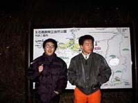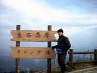 | (左)生石高原の案内掲示板の前で、黒木兄弟(弟)と