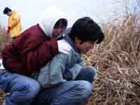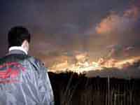 黒木兄弟(弟)。時間は7時を回っていました。 (中央)暫く黙り込んで初日の出を見るフェロモンズの一員。 |