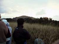 6時30分頃に無事、生石(おいし)高原に辿り着きました。 辿り着いてみると、てっきり誰もいないと思っていたはずが、思いのほか 大盛況でした。これでは、当初予定していた初日の出と同時にキャッチボールを するという計画が、実行できません。他の人にボールが当たったら危ないのと、 恥ずかしいということがあるからです。というわけで、キャッチボールは 本拠地へ帰ってからすることにします(別項のキャッチボール参照)。 |