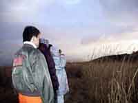 ちなみにこの2人が立っている所は、断崖絶壁のすぐ手前でした。あ〜怖い。 (中央)「また一昨年と、同じなんかね〜」と年寄り臭く語るアズマ。 |