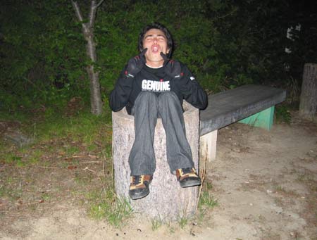 夜の探検は何が飛び出すかわからない。 気合を入れる我々。